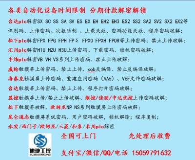 晉江速捷自動化科技有限公司 總部地址:福建省晉江市安海汽車站旁 PLC解密電話:15059791632 觸摸屏解鎖咨詢:15059791632