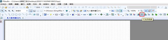 1.觸摸屏接通電源,軟件內點擊“打包到磁盤”,